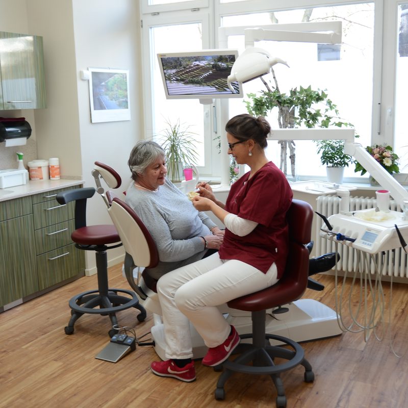 Unsere PZR-Assistentin unterweist sie im Mundhygiene und Zahnpflege und beantwortet gern ihre Fragen.